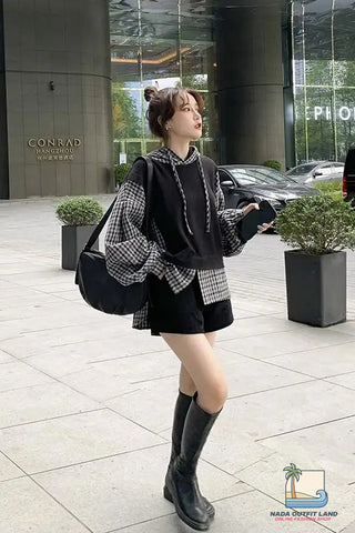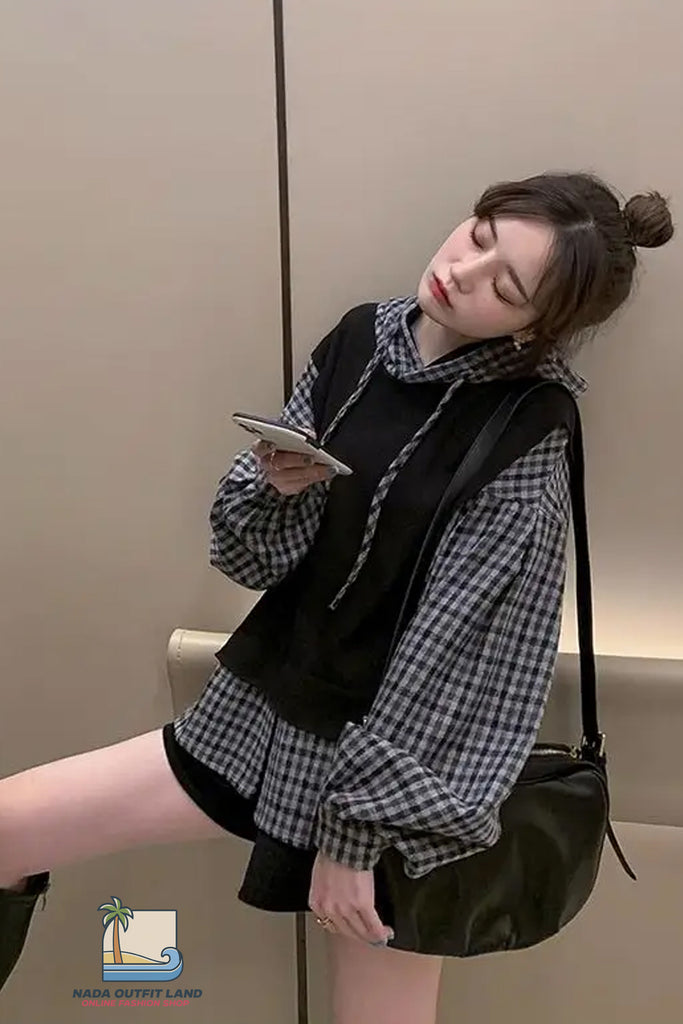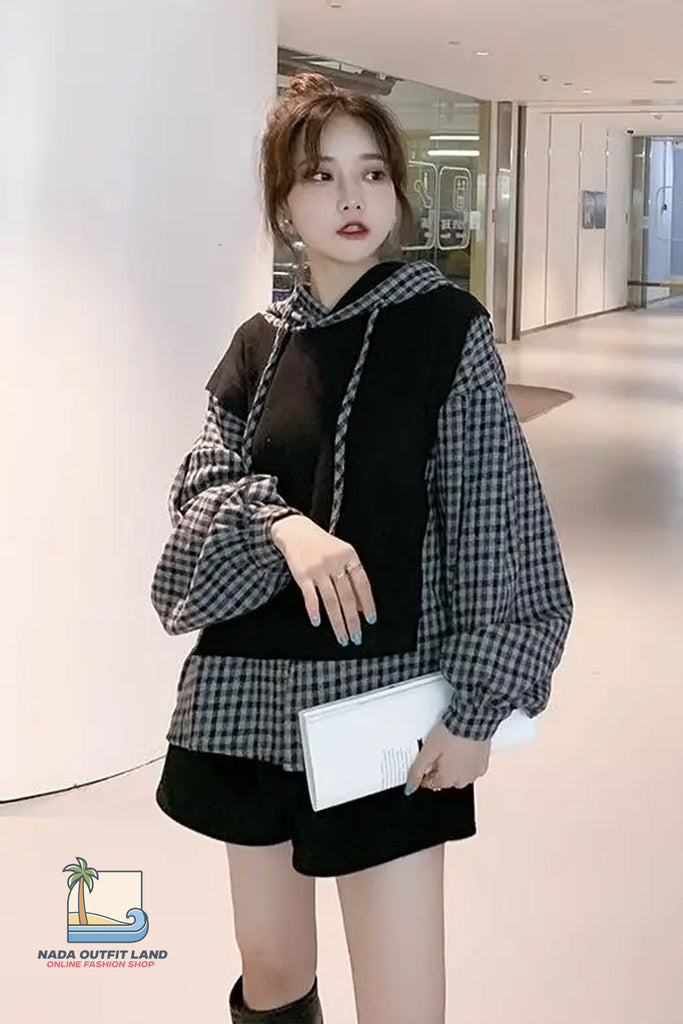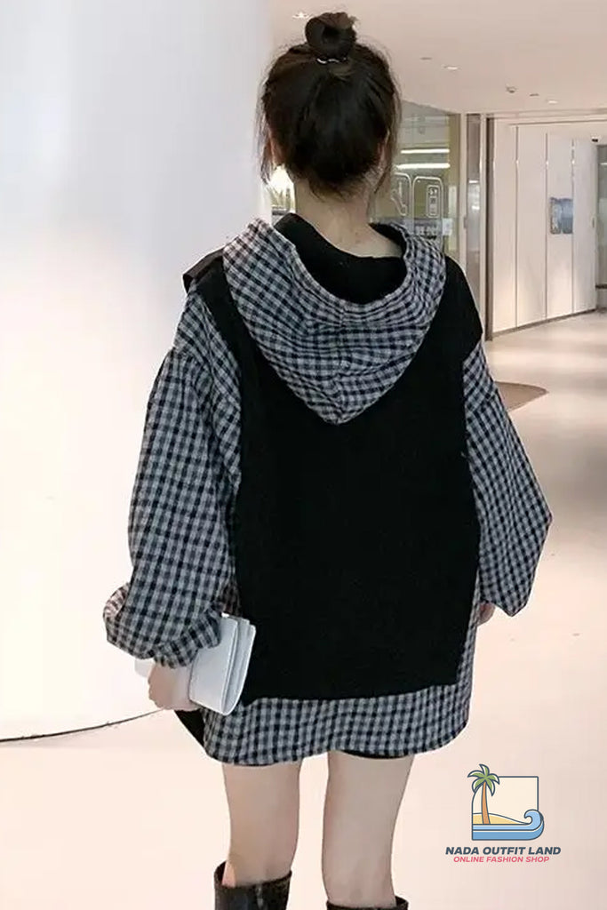 Buy Loose Two Style Hooded Plaid Sweatshirt from Nada Outfit Land for your outfit of the day. This item is in stock and ready to order. World Wide Shipping Service. Check our Shop for more trendy fashion.