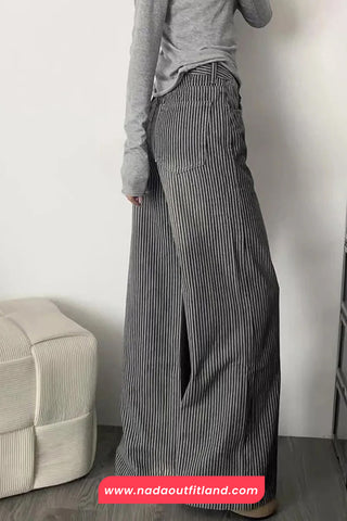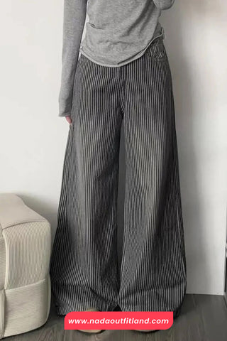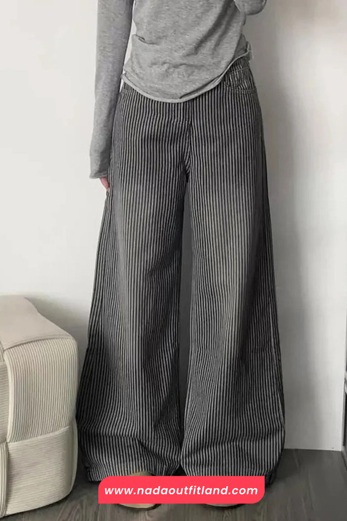 Buy Loose Vintage Elegant Denim Striped Pants from Nada Outfit Land for your outfit of the day. This item is in stock and ready to order. World Wide Shipping Service. Check our Shop for more trendy fashion.