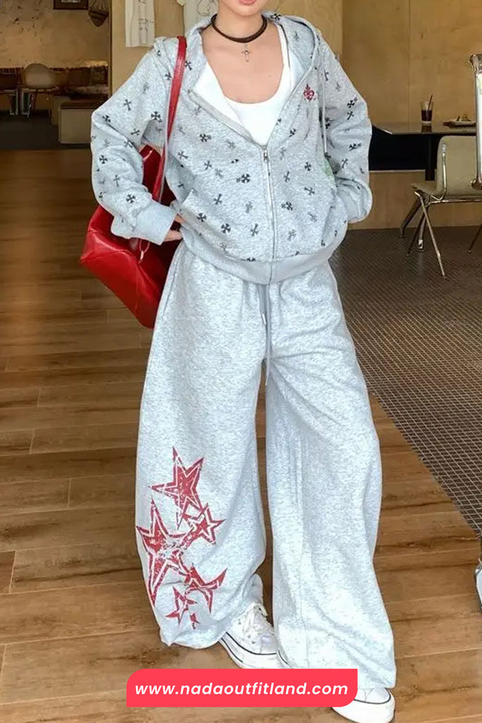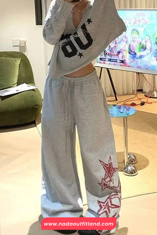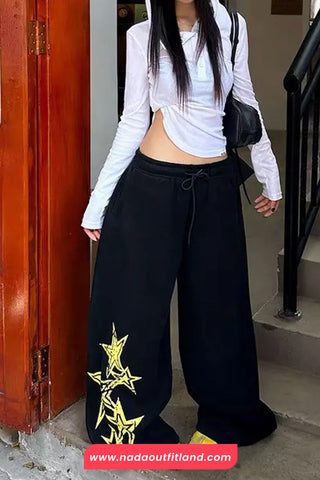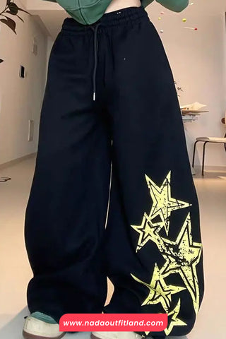 Buy Loose Wide Leg Stars Pattern Home Wear Sweatpants from Nada Outfit Land for your outfit of the day. This item is in stock and ready to order. World Wide Shipping Service. Check our Shop for more trendy fashion.