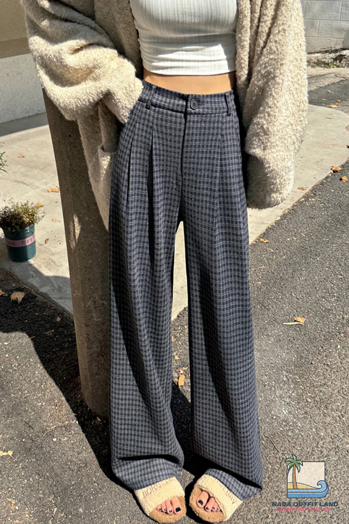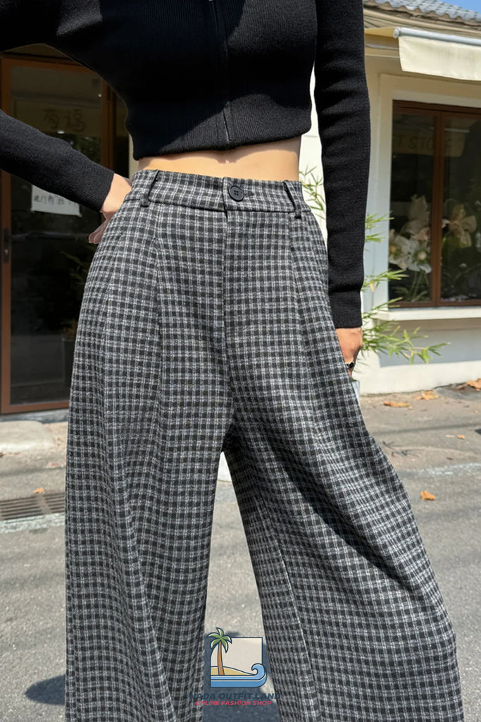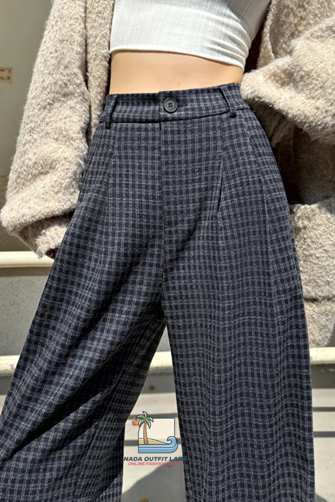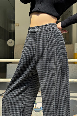 Buy Loose Wide Leg Woolen Plaid Casual Pants from Nada Outfit Land for your outfit of the day. This item is in stock and ready to order. World Wide Shipping Service. Check our Shop for more trendy fashion.