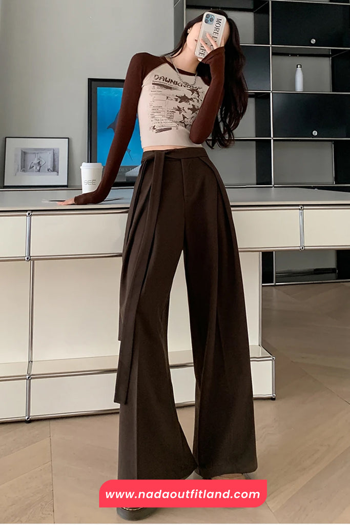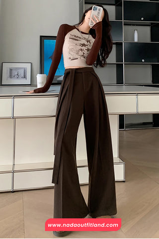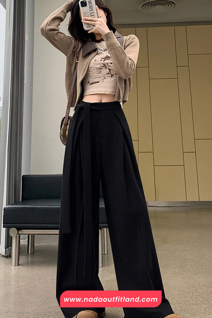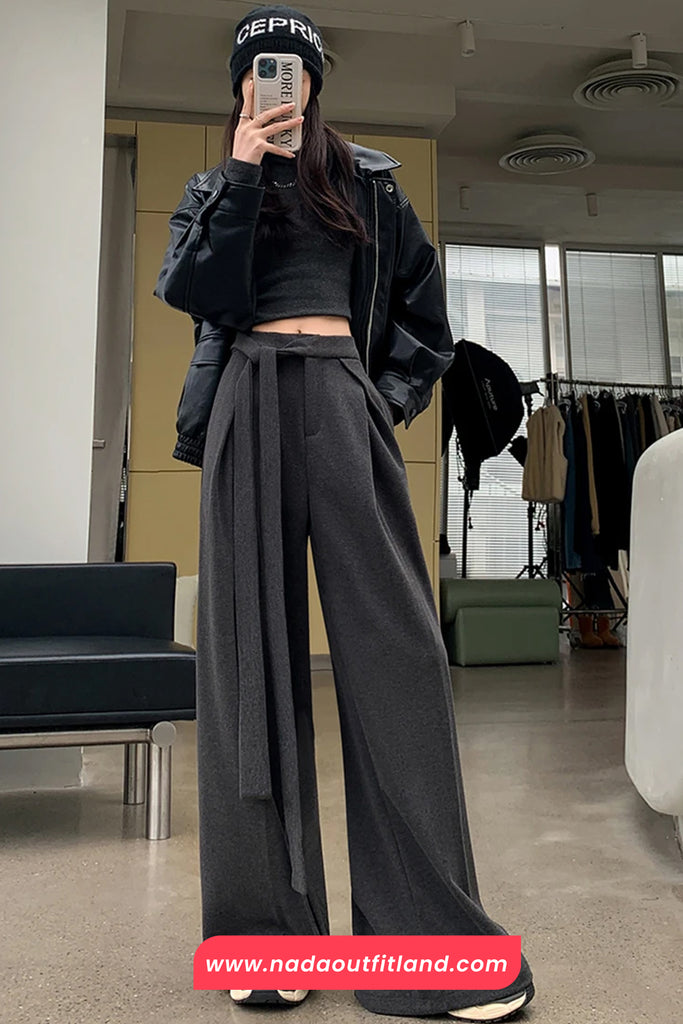 Buy Loose Woolen Lace Up Wide Leg Pants from Nada Outfit Land for your outfit of the day. This item is in stock and ready to order. World Wide Shipping Service. Check our Shop for more trendy fashion.