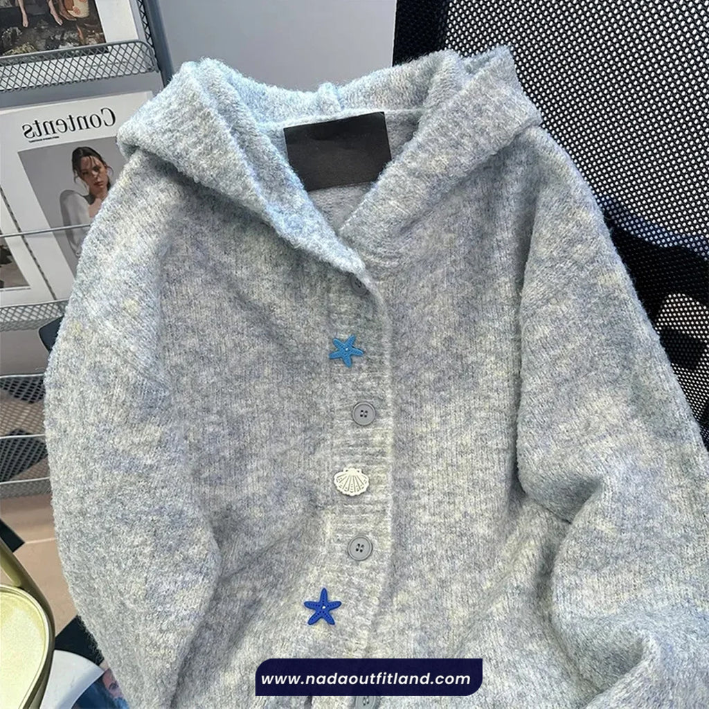 Buy Ocean Theme Button Hooded Cardigan Sweater from Nada Outfit Land for your outfit of the day. This item is in stock and ready to order. World Wide Shipping Service. Check our Shop for more trendy fashion.