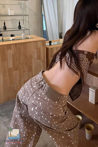 Buy Retro Dots Pattern Khaki Jeans Pants from Nada Outfit Land for your outfit of the day. This item is in stock and ready to order. World Wide Shipping Service. Check our Shop for more trendy fashion.