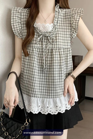 Buy Retro Lace Patchwork Cute Plaid Blouse Shirt from Nada Outfit Land for your outfit of the day. This item is in stock and ready to order. World Wide Shipping Service. Check our Shop for more trendy fashion.