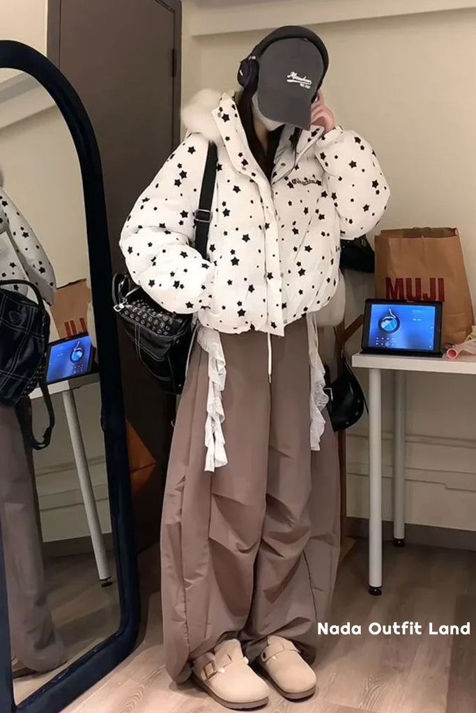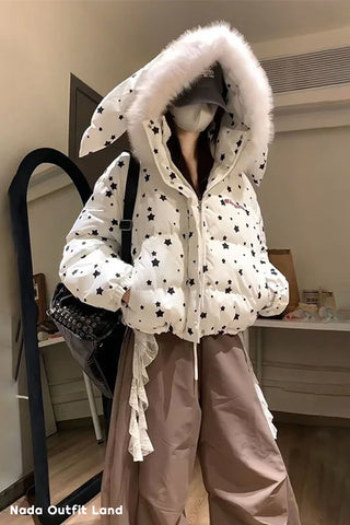 Buy Retro Stars Pattern Cute Rabbit Ears Hooded Parkas Jacket from Nada Outfit Land for your outfit of the day. This item is in stock and ready to order. World Wide Shipping Service. Check our Shop for more trendy fashion.