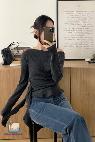 Buy Ruffles Lace Up Elegant Off Shoulder Sweater from Nada Outfit Land for your outfit of the day. This item is in stock and ready to order. World Wide Shipping Service. Check our Shop for more trendy fashion.