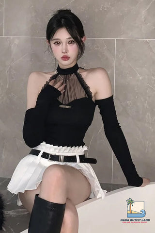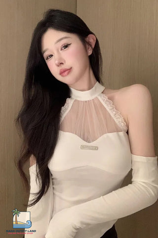 Buy Sexy Off Shoulder Halter Neck Lace Cropped Shirt from Nada Outfit Land for your outfit of the day. This item is in stock and ready to order. World Wide Shipping Service. Check our Shop for more trendy fashion.