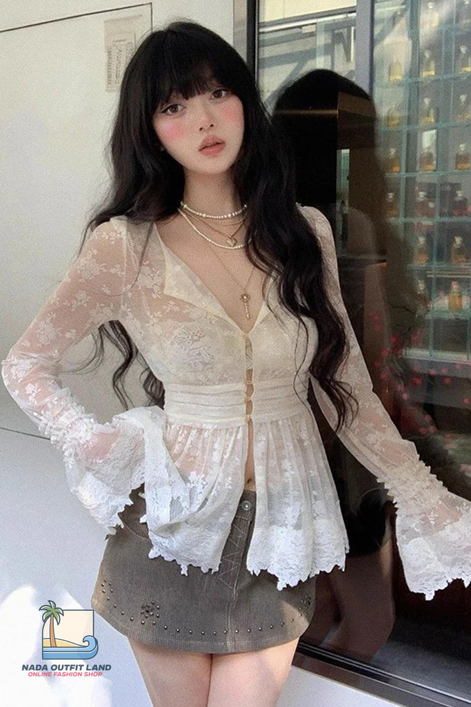 Whether you're dressing for a night out, a dinner date, a party, or a stylish office look, the Sexy V-Neck Flare Sleeve Semi Transparent Blouse Shirt offers a perfect balance of elegance, confidence, and modern style.