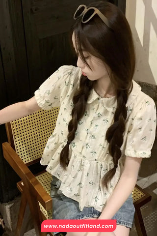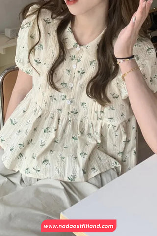 Buy Short Sleeve Floral Pattern Doll Collar Shirt from Nada Outfit Land for your outfit of the day. This item is in stock and ready to order. World Wide Shipping Service. Check our Shop for more trendy fashion.
