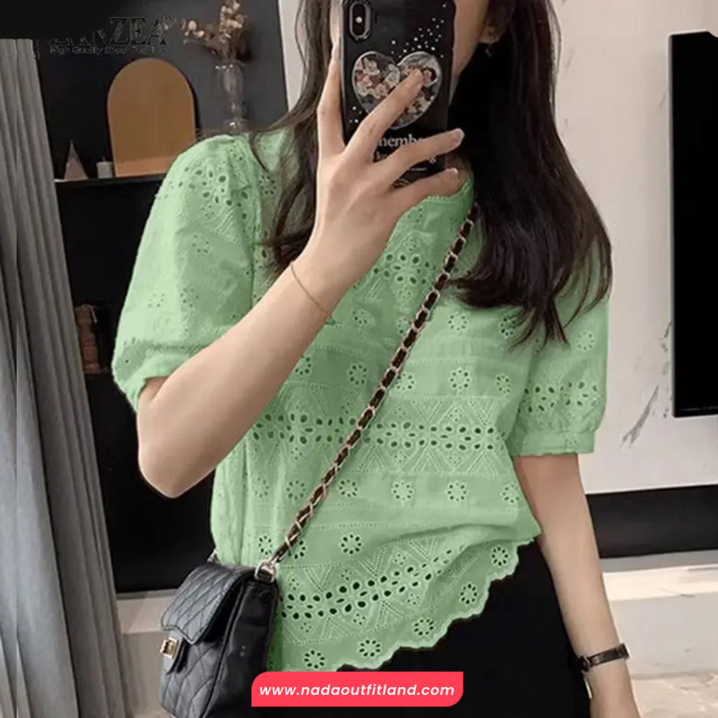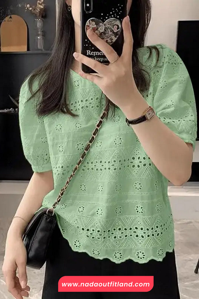 Buy Short Sleeve O-Neck Hollow Out Crochet Shirts from Nada Outfit Land for your outfit of the day. This item is in stock and ready to order. World Wide Shipping Service. Check our Shop for more trendy fashion.