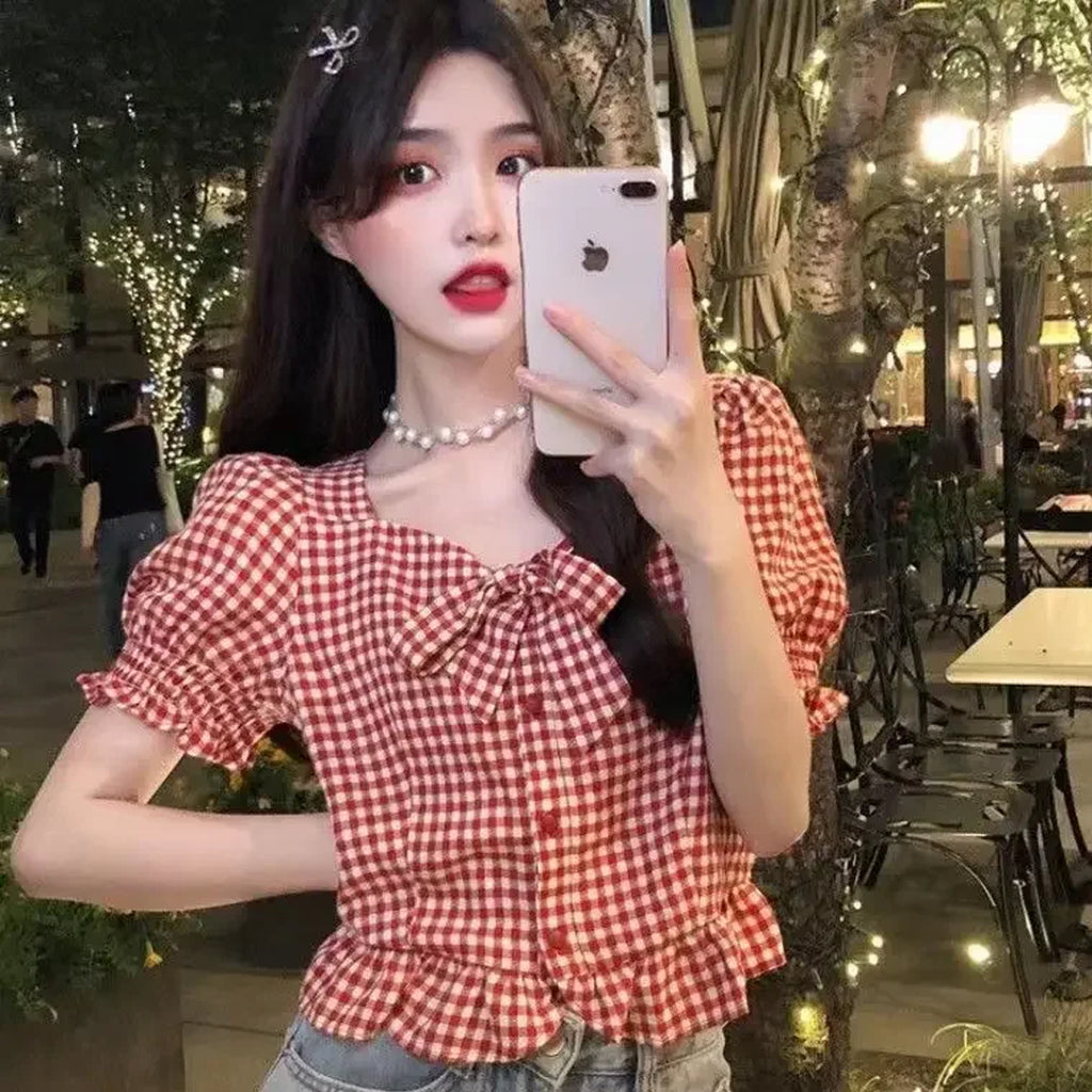 Crafted from a crisp, breathable cotton blend, this cropped blouse is engineered to keep you cool while maintaining a sharp, polished shape. The cropped hemline is tailored to sit at the perfect height for high-waisted denim, tennis skirts, or vintage trousers, creating a flattering, "snatched" waistline. With its classic pointed collar and neat short sleeves, this plaid bow-front top transitions effortlessly from a sunny afternoon picnic to a trendy downtown brunch. It’s the perfect piece for anyone looking to add a "sugar and spice" edge to their summer or holiday wardrobe.