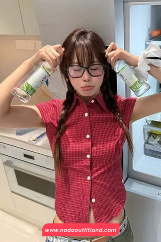 Buy Short Sleeve Sexy Red Plaid Cropped Collar Shirt from Nada Outfit Land for your outfit of the day. This item is in stock and ready to order. World Wide Shipping Service. Check our Shop for more trendy fashion.