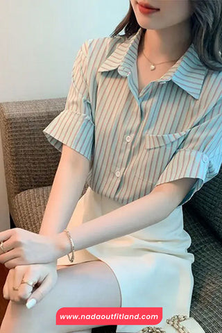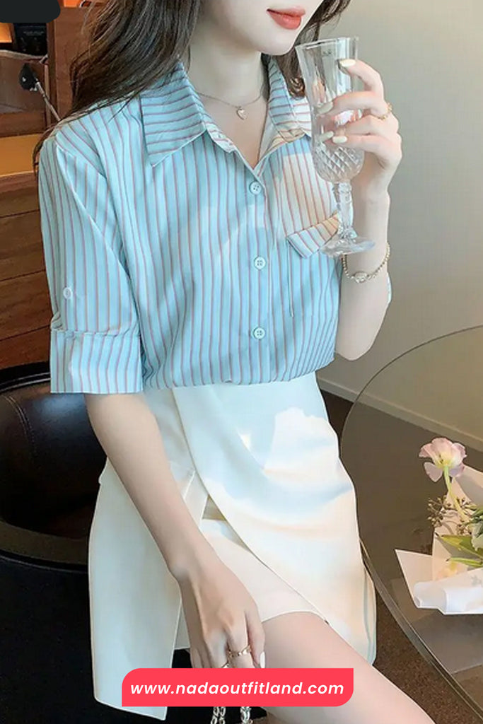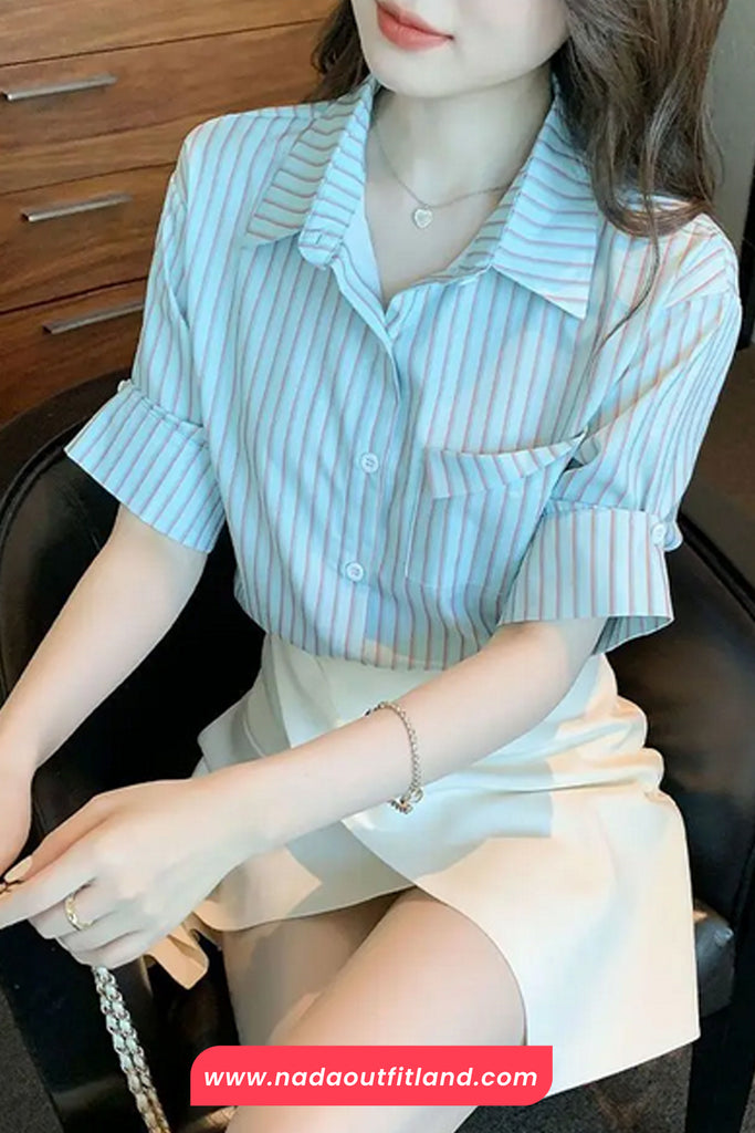 Buy Short Sleeve Striped Pattern Office Blouse Shirt from Nada Outfit Land for your outfit of the day. This item is in stock and ready to order. World Wide Shipping Service. Check our Shop for more trendy fashion.
