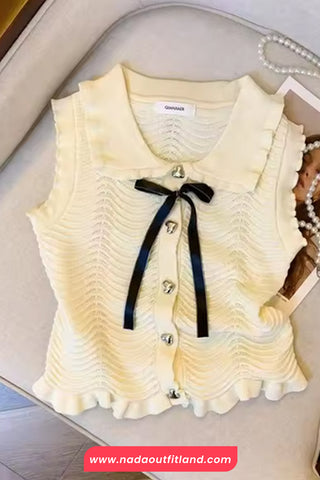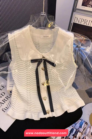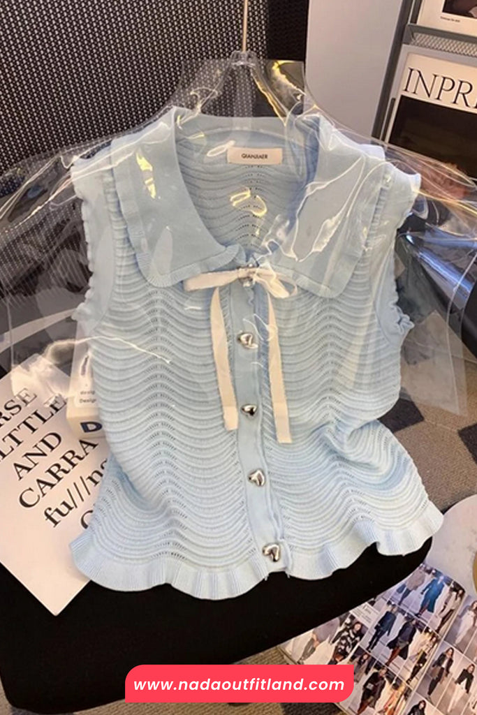 Buy Sleeveless Heart Button Knitted Doll Collar Shirt from Nada Outfit Land for your outfit of the day. This item is in stock and ready to order. World Wide Shipping Service. Check our Shop for more trendy fashion.