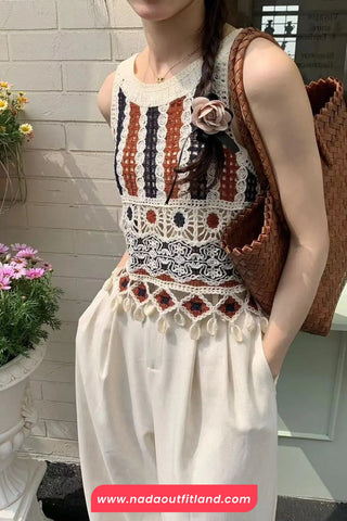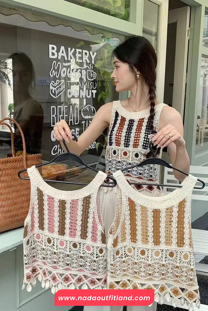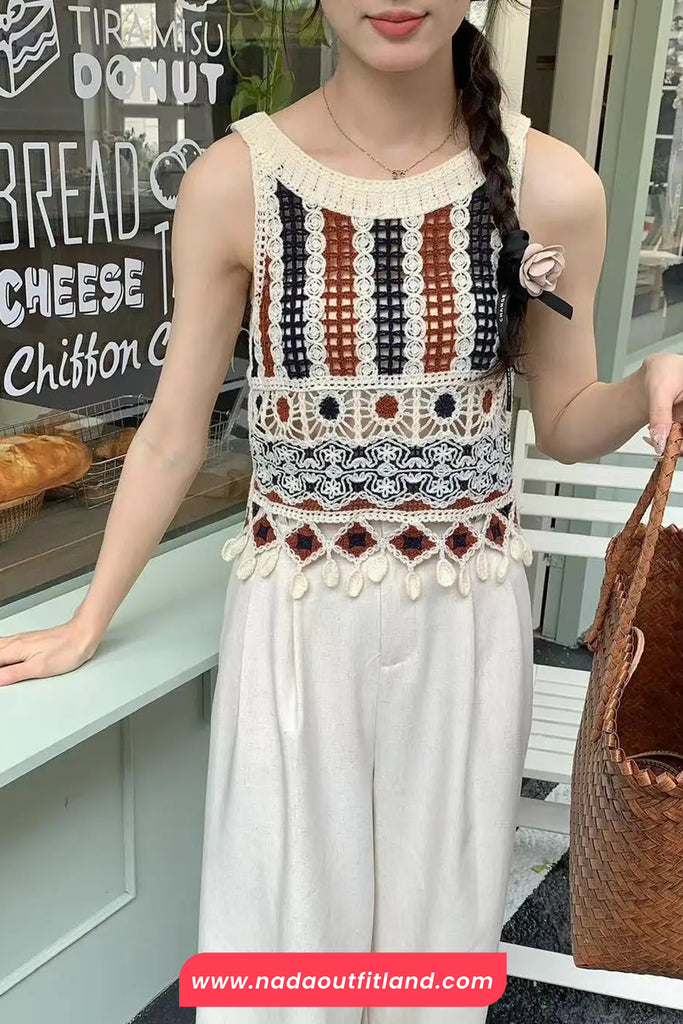 Buy Sleeveless Knitted Hollow Out Striped Crochet Crop Tops from Nada Outfit Land for your outfit of the day. This item is in stock and ready to order. World Wide Shipping Service. Check our Shop for more trendy fashion.