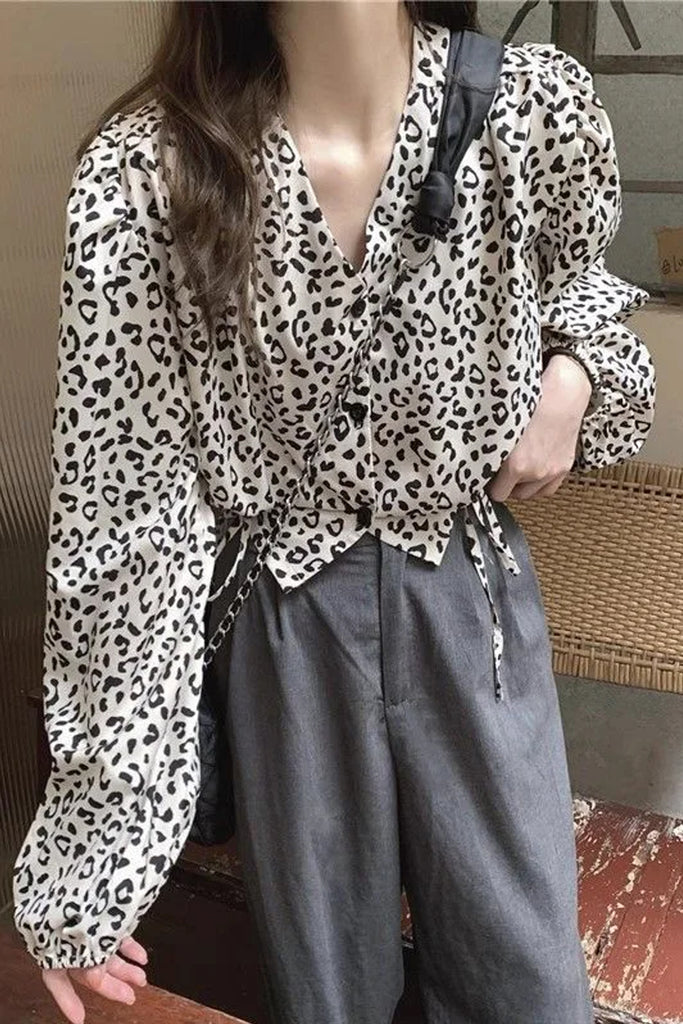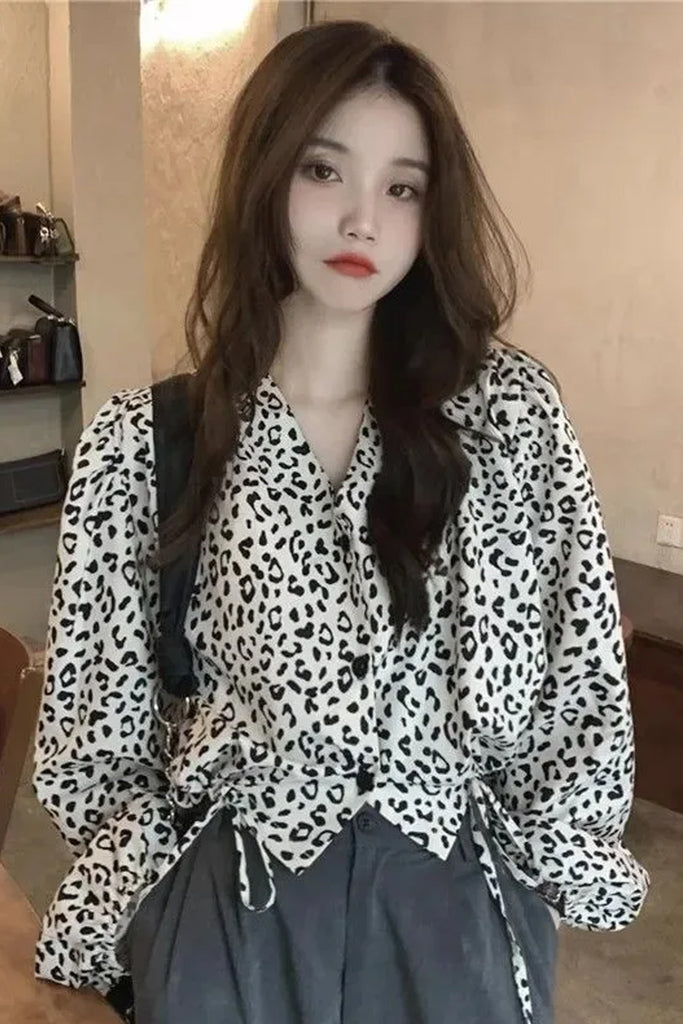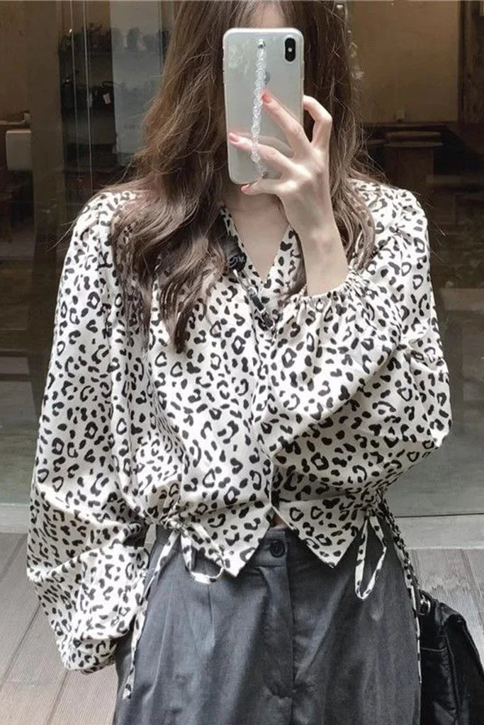 Crafted from a silky-soft, high-stretch fabric blend, this shirt offers a luxurious hand-feel and a flattering, form-fitting silhouette. The timeless leopard pattern is rendered in rich, high-definition tones that pair effortlessly with leather, denim, or gold accessories. Whether you're leaning into the Mob Wife aesthetic with an oversized faux-fur coat or going for a 90s Grunge vibe with distressed black jeans, this leopard lace-up shirt provides the perfect amount of "bite" for your wardrobe. It’s a versatile piece that balances high-fashion intensity with everyday comfort.