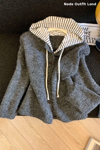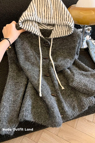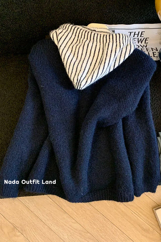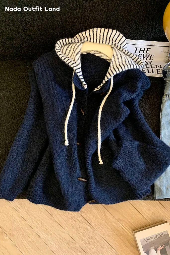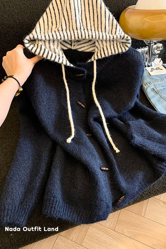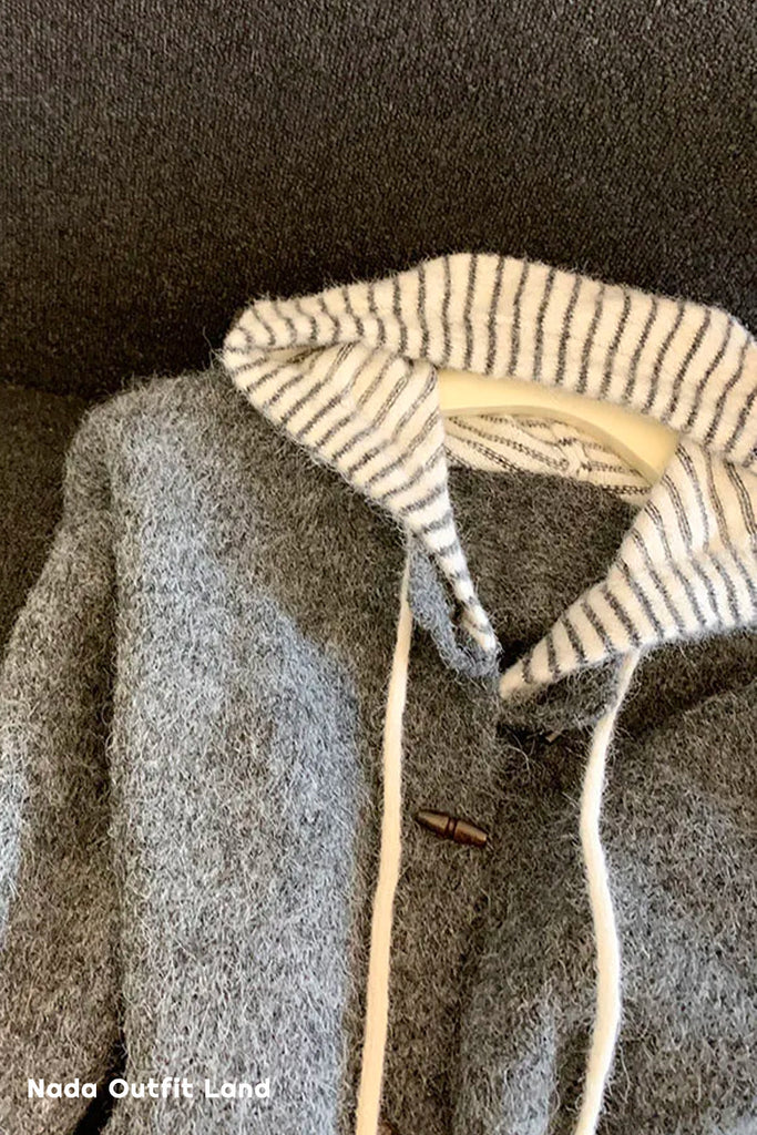 Buy Vintage Hooded Striped Woolen Cardigan Sweater from Nada Outfit Land for your outfit of the day. This item is in stock and ready to order. World Wide Shipping Service. Check our Shop for more trendy fashion.