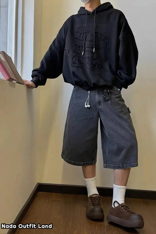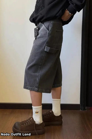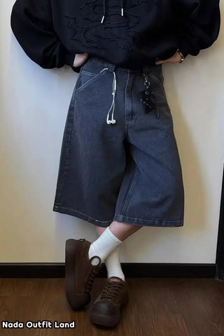 Buy Vintage Knee Length Washed Black Denim Shorts from Nada Outfit Land for your outfit of the day. This item is in stock and ready to order. World Wide Shipping Service. Check our Shop for more trendy fashion.
