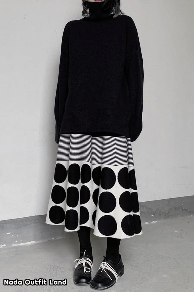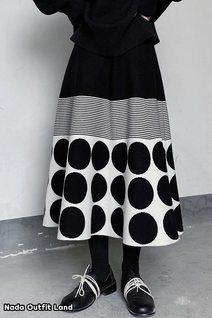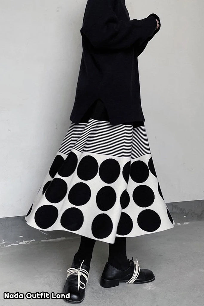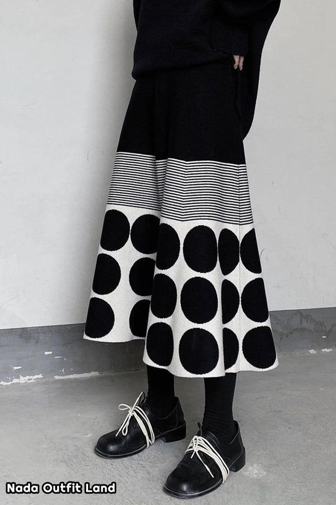 Buy Vintage Polka Dot Striped Pattern Knitted Midi Skirts from Nada Outfit Land for your outfit of the day. This item is in stock and ready to order. World Wide Shipping Service. Check our Shop for more trendy fashion.