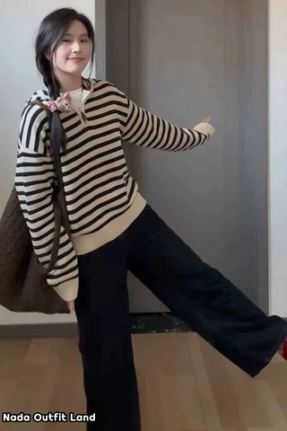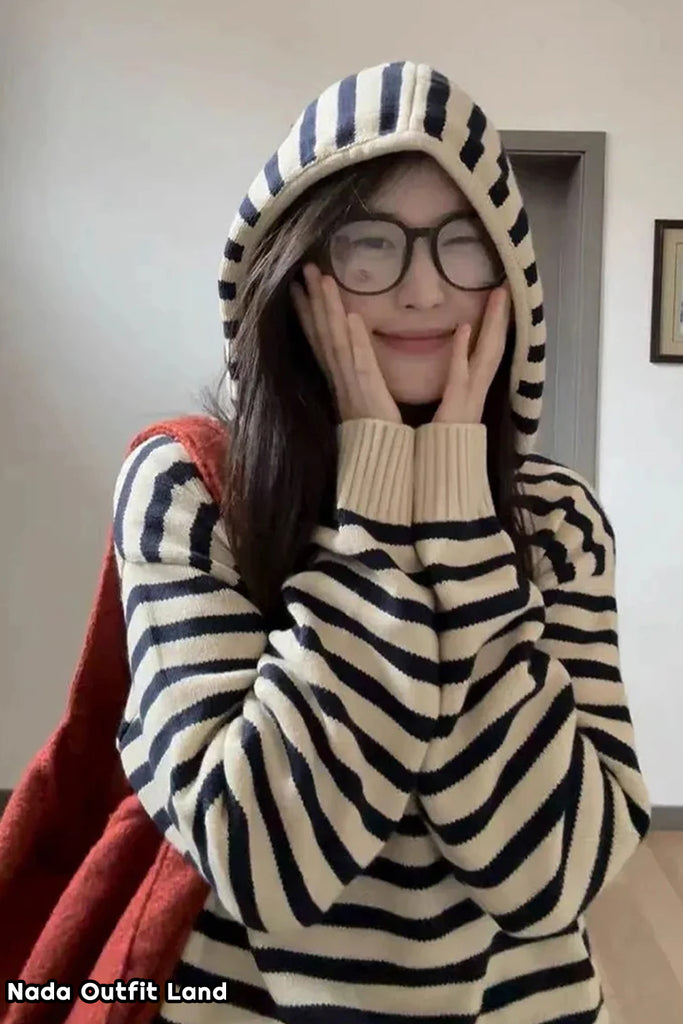 Buy Vintage Striped Hooded Knitted Sweater from Nada Outfit Land for your outfit of the day. This item is in stock and ready to order. World Wide Shipping Service. Check our Shop for more trendy fashion.