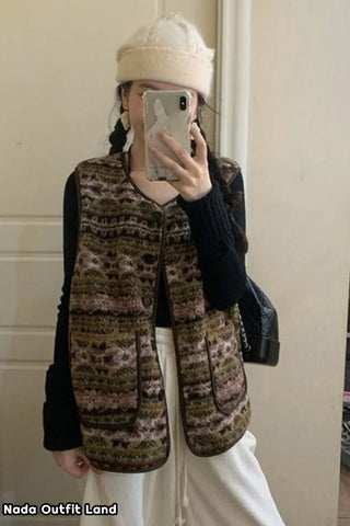 Buy Vintage Style Double Pockets Vest Sweater from Nada Outfit Land for your outfit of the day. This item is in stock and ready to order. World Wide Shipping Service. Check our Shop for more trendy fashion.